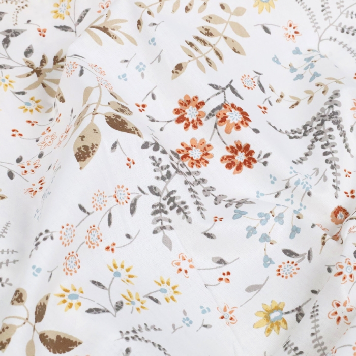 Schnellsuche , , Білий, Квіти, Ранфорс, 180х220 см, Двоспальна постільна білизна з простирадлом на резинці PASTEL GARDEN