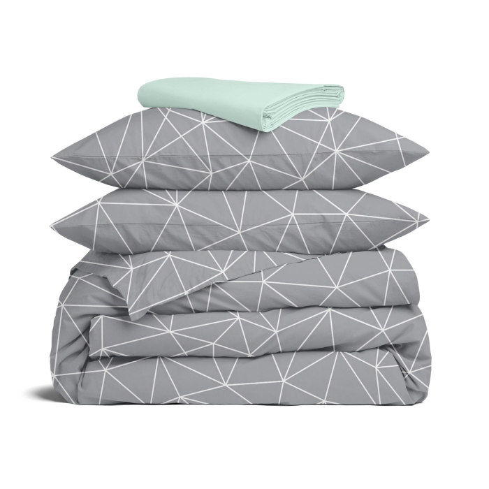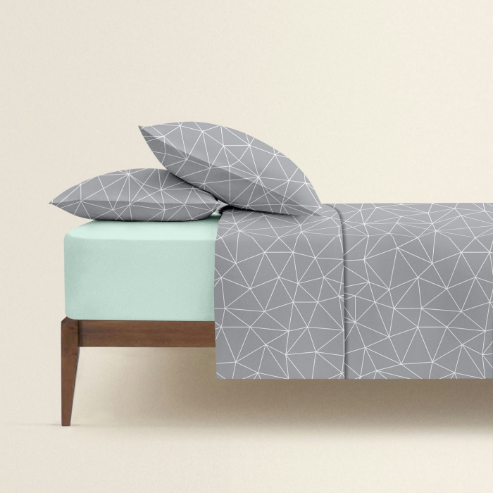 Schnellsuche , , Сірий, Геометрія, Ранфорс, 180х220 см, Двоспальна постільна білизна з простирадлом на резинці STONE LINES