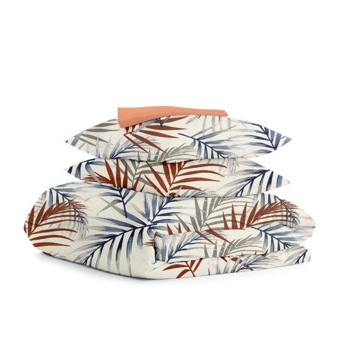 • Практичність: двоспальний комплект включає простирадло з бавовни на резинці, що не ковзає, не мнеться, легко прасується.