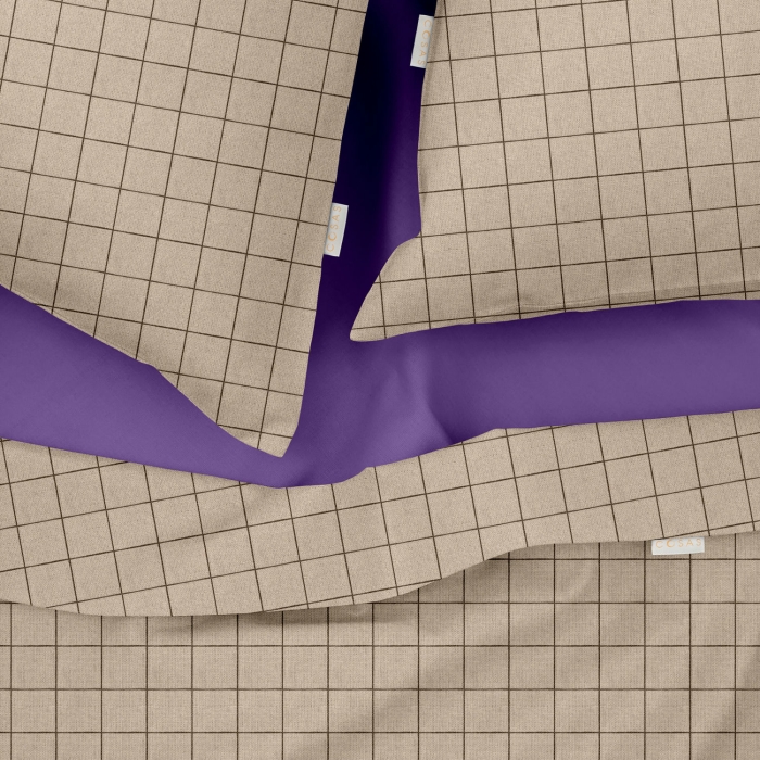 Двоспальна постільна білизна з простирадлом на резинці BEIGE GEOMETRY CS11