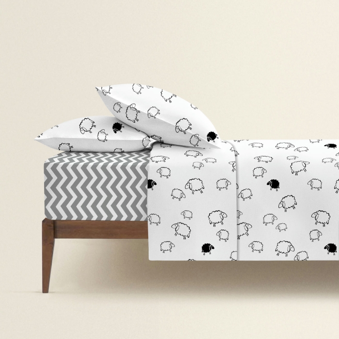 Двоспальна постільна білизна з простирадлом на резинці BLACK SHEEP CS5