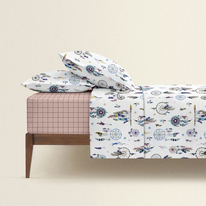 Двоспальна постільна білизна з простирадлом на резинці BLUE DREAMCATCHER