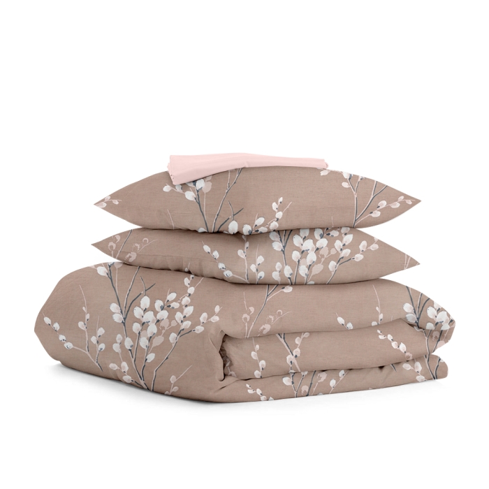 Двоспальна постільна білизна з простирадлом на резинці FLOWER BUDS