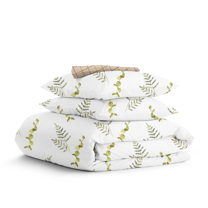 Двоспальна постільна білизна з простирадлом на резинці GREEN FOLIAGE CS6