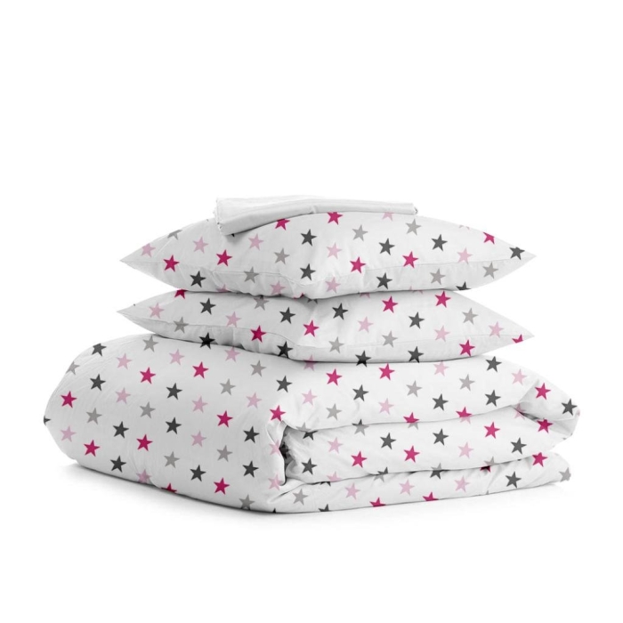 Двоспальна постільна білизна з простирадлом на резинці GREY STARS