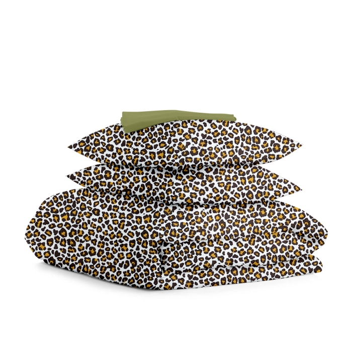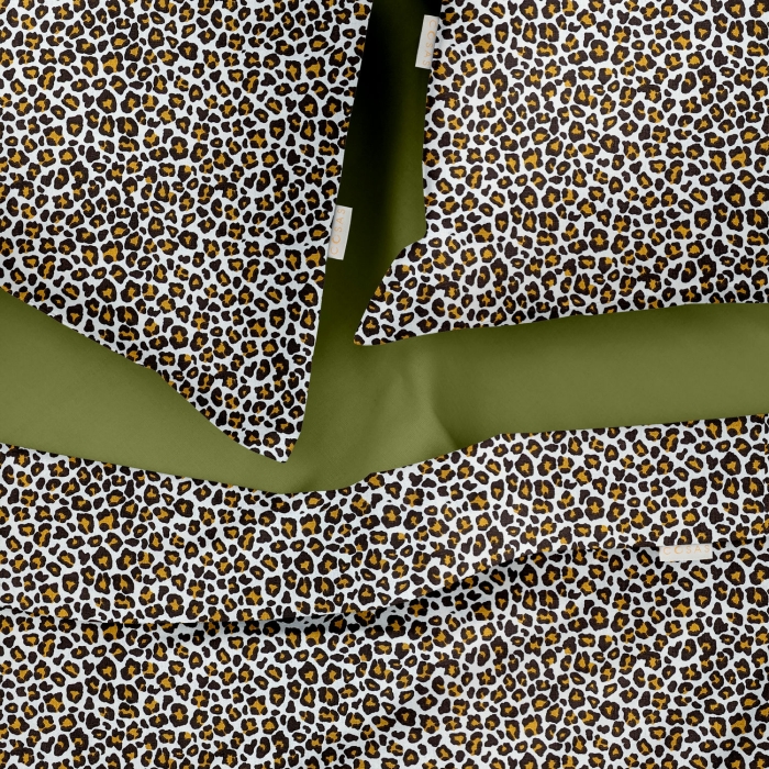 Двоспальна постільна білизна з простирадлом на резинці LEOPARD CS1