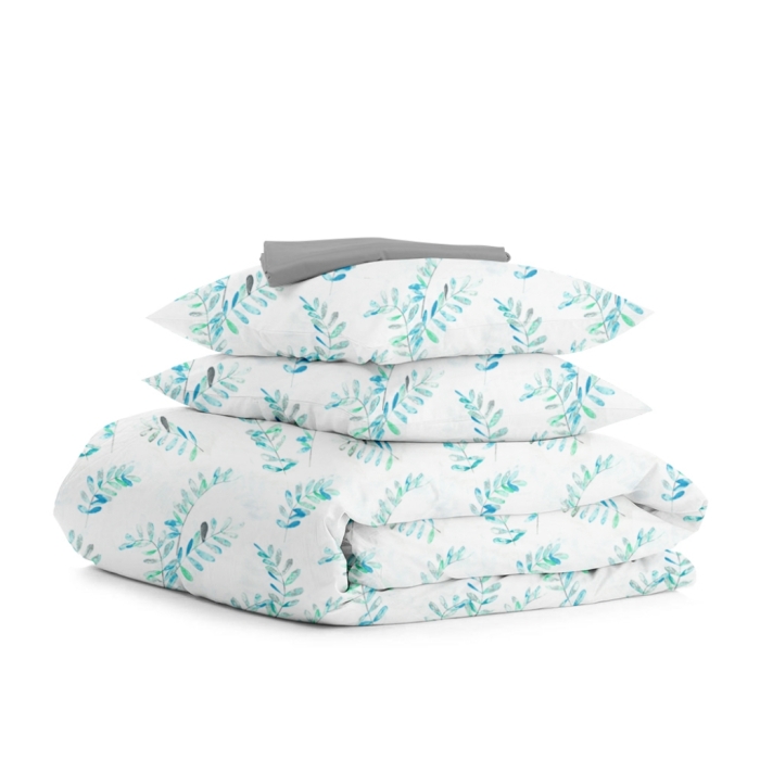 Двоспальна постільна білизна з простирадлом на резинці MINT FOLIAGE CS4