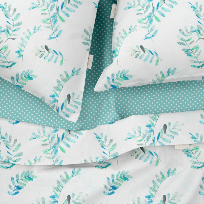 Двоспальна постільна білизна з простирадлом на резинці MINT FOLIAGE CS9