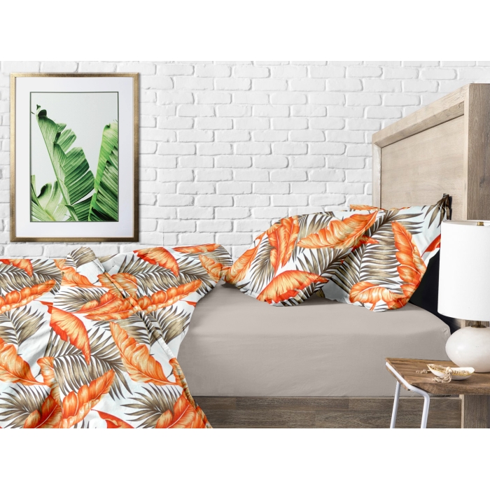 Двоспальна постільна білизна з простирадлом на резинці ORANGE PALMS CS2