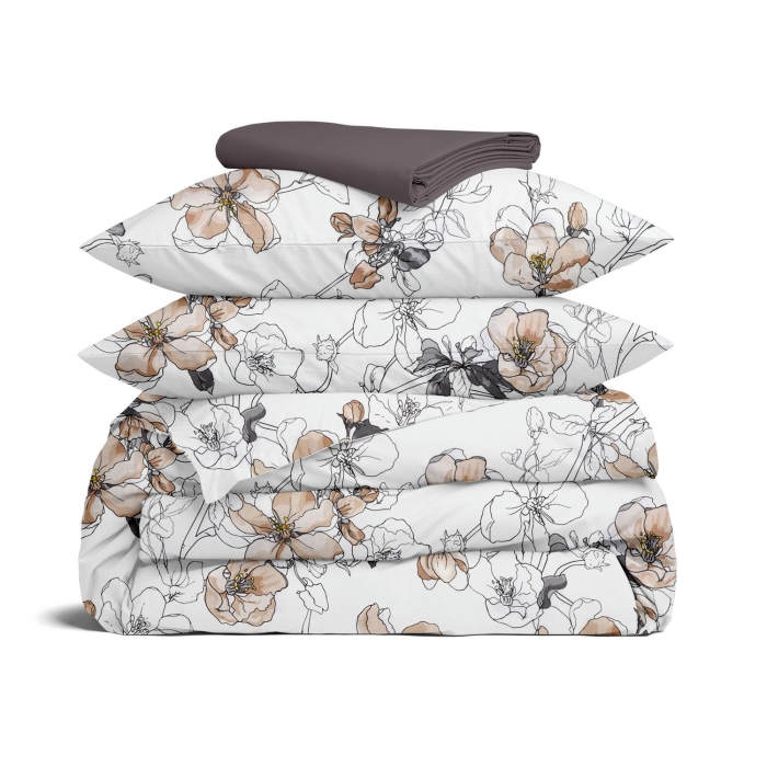 Двоспальна постільна білизна з простирадлом на резинці PASTEL FLOWERS CS3