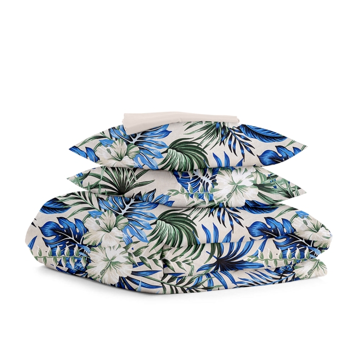 Двоспальна постільна білизна з простирадлом на резинці TTROPICAL PALM CS2