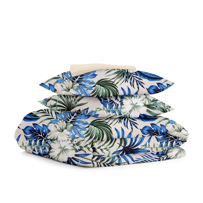 Двоспальна постільна білизна з простирадлом на резинці TTROPICAL PALM CS4