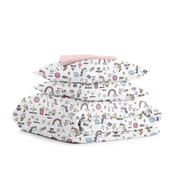 Двоспальна постільна білизна з простирадлом на резинці UNICORN & SWEETS CS2
