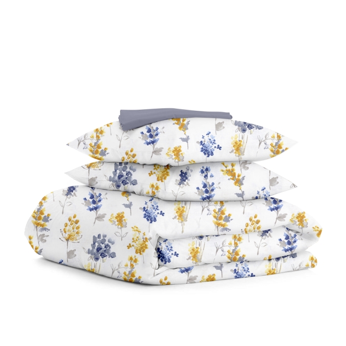 Двоспальна постільна білизна з простирадлом на резинці WATERCOLOR FLOWERS CS6