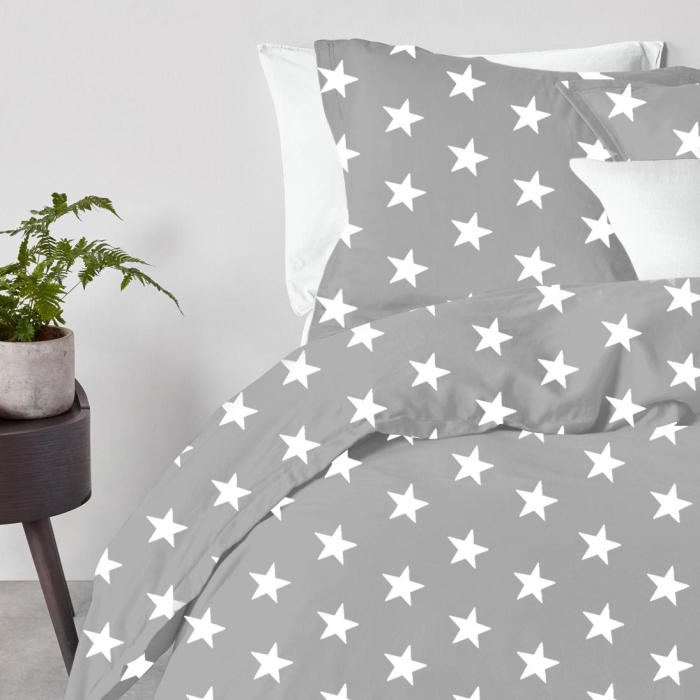 Двоспальна постільна білизна з простирадлом на резинці WHITE STARS CS1
