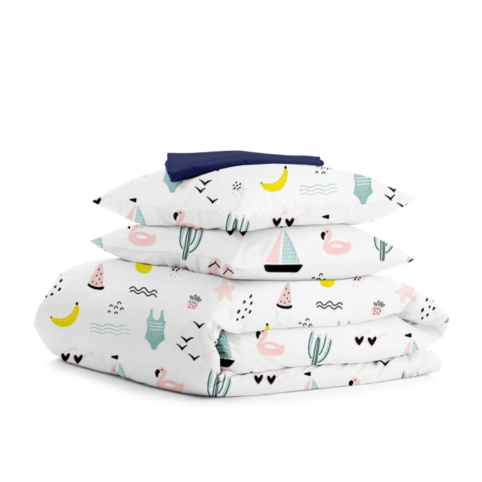 Простирадло на резинці 180х200х20 см - 1 шт. Підодіяльник 200х220 см - 1 шт. Наволочка 50х70 см - 2 шт.