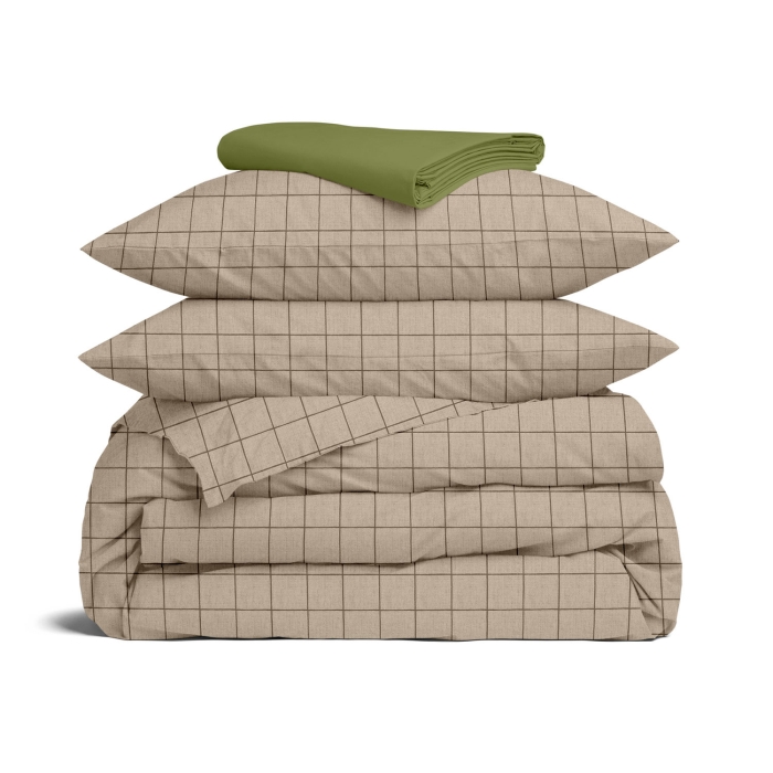 Євро постільна білизна з простирадлом на резинці BEIGE GEOMETRY CS4