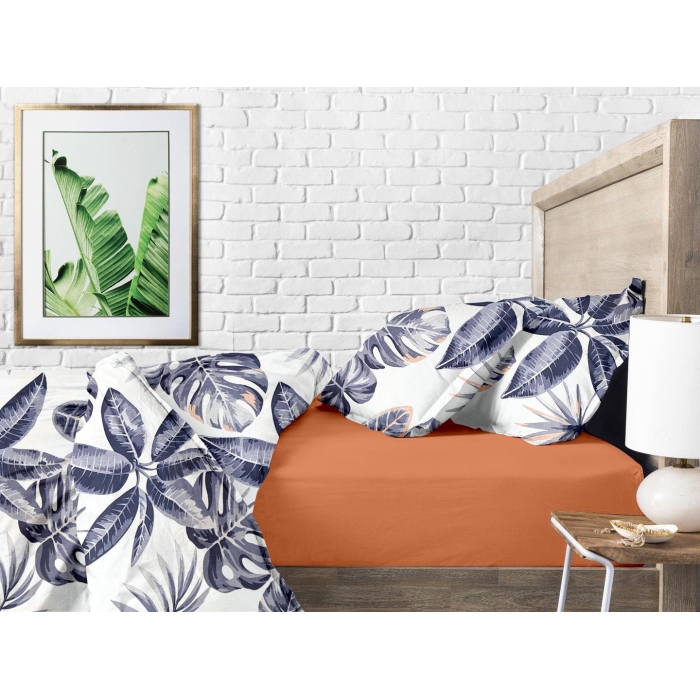 Євро постільна білизна з простирадлом на резинці PALM LEAVES CS4