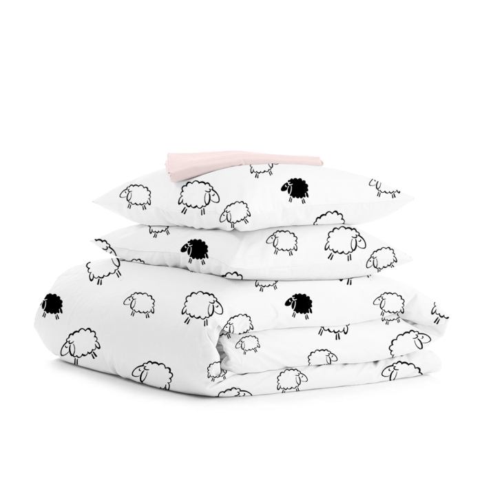 Євро постільна білизна з простирадлом на резинці SHEEP BLACK