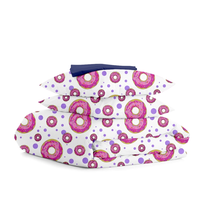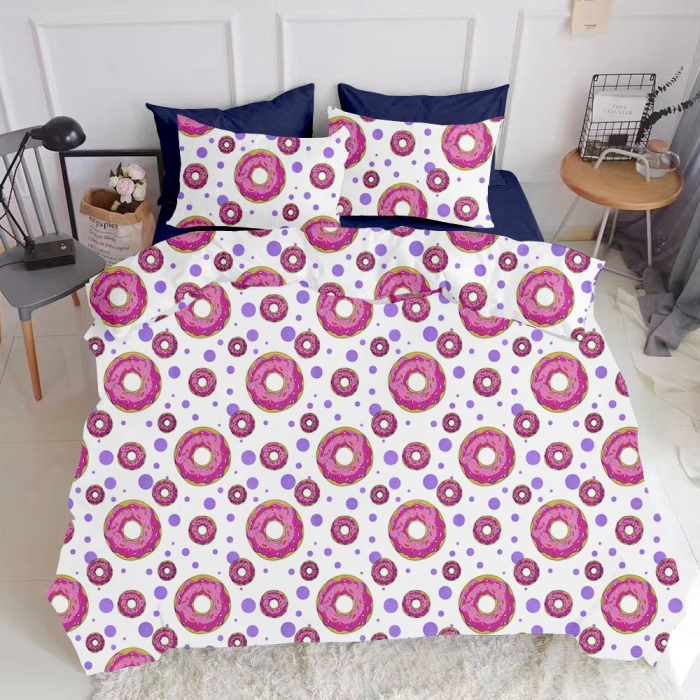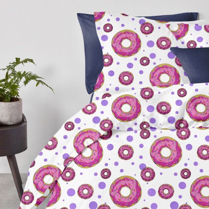 Євро постільна білизна з простирадлом на резинці SWEET DONUT DARK BLUE