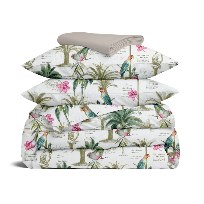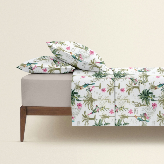 Schnellsuche , , Зелений, Тропіки, Ранфорс, 200х220 см, Євро постіль з простирадлом на резинці BALI