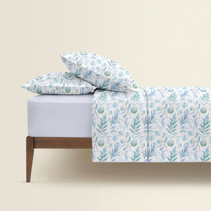 Євро постільна білизна з простирадлом на резинці BLUE LEAVES