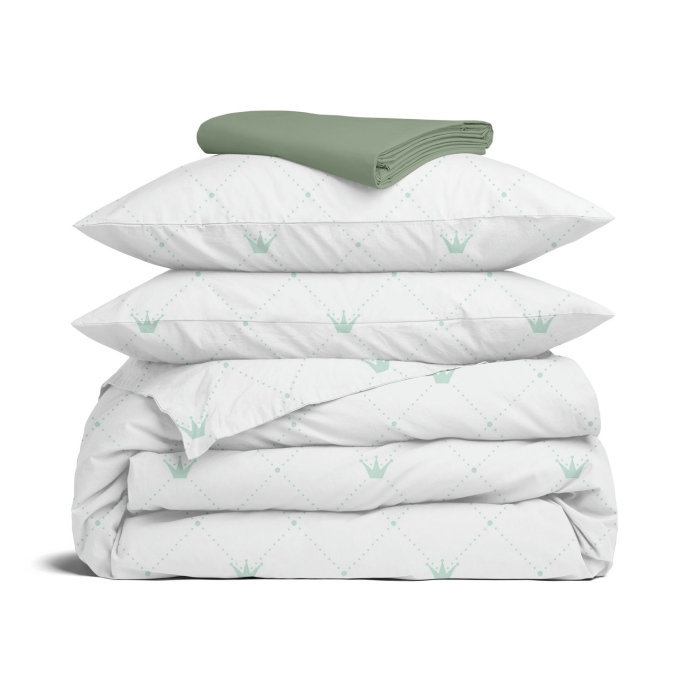 Schnellsuche , , М'ятний, Корони, Ранфорс, 200х220 см, Євро постіль з простирадлом на резинці CROWN
