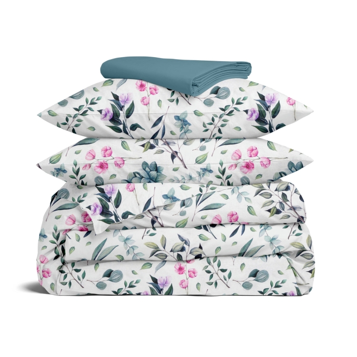 Євро постільна білизна з простирадлом на резинці FLORENCE FLOWERS CS1