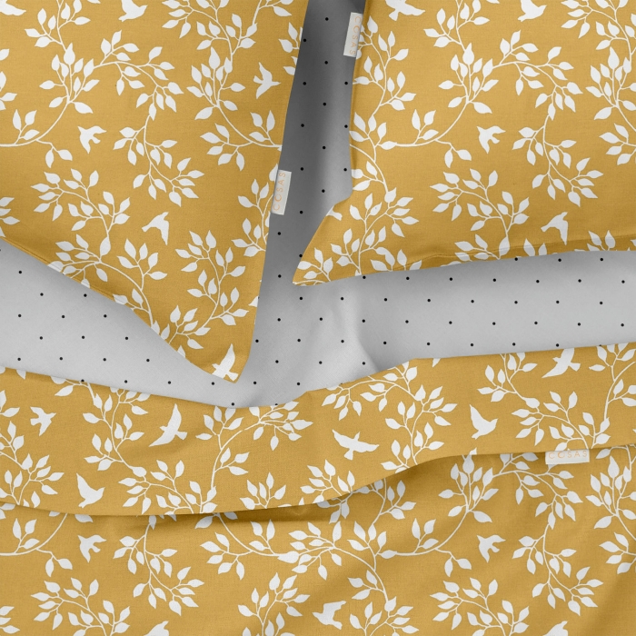 Artikelnr. BirdsFoliageMustard_El-DotsGreyGrey_200