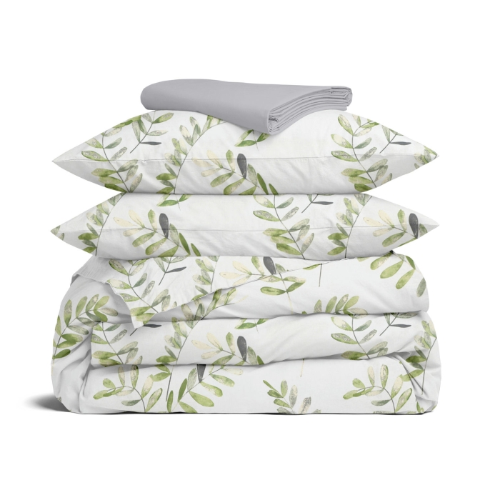 Schnellsuche , , Зелений, Листя, Ранфорс, 200х220 см, Євро постіль з простирадлом на резинці FOLIAGE