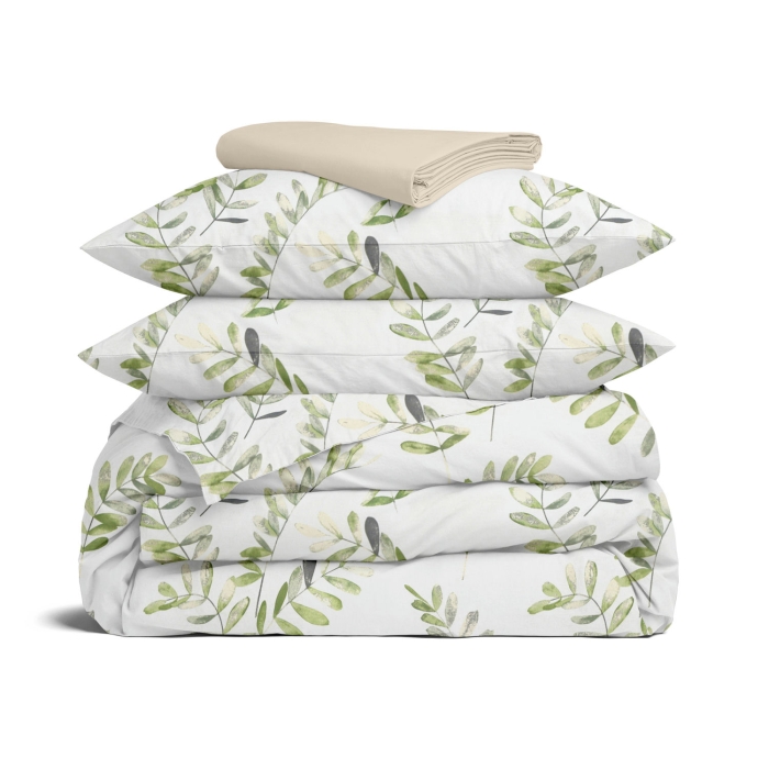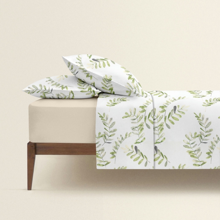 Schnellsuche , , Зелений, Листя, Ранфорс, 200х220 см, Євро постіль з простирадлом на резинці FOLIAGE