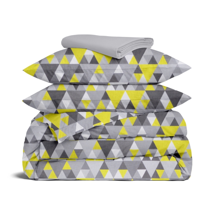 Schnellsuche , , Сірий, Геометрія, Ранфорс, 200х220 см, Євро постіль з простирадлом на резинці GEOMETRY
