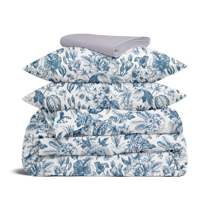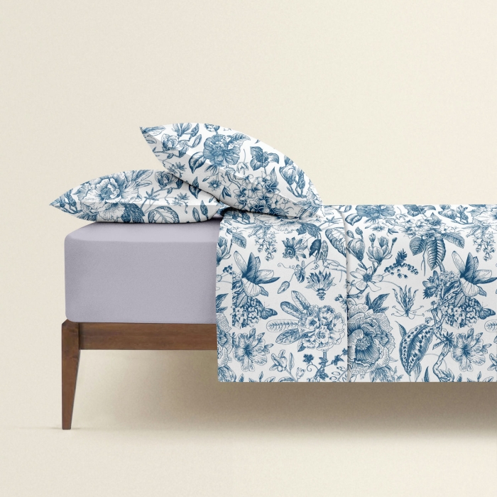 Schnellsuche , , Синій, Квіти, Ранфорс, 200х220 см, Євро постіль з простирадлом на резинці SWEDISH FLORAL