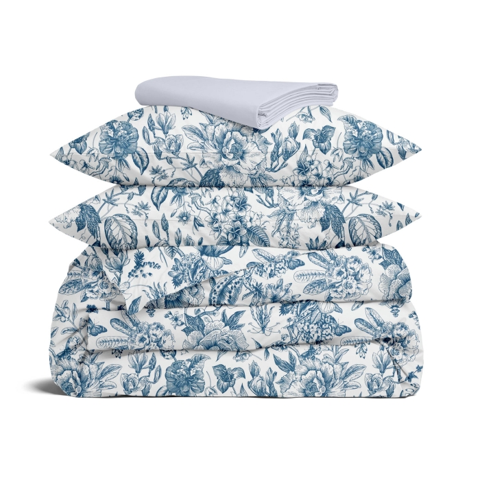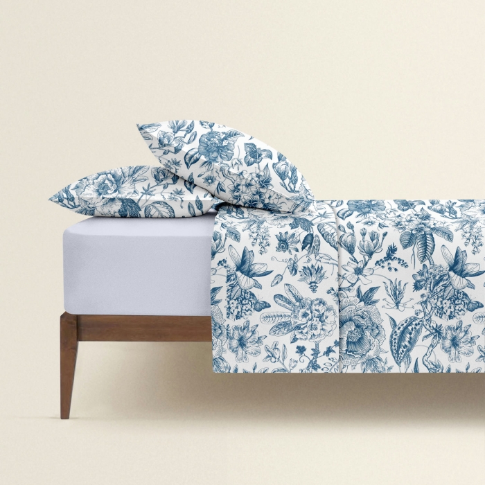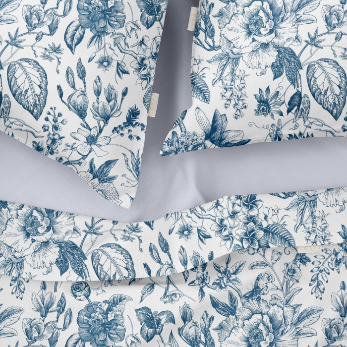 Schnellsuche , , Синій, Квіти, Ранфорс, 200х220 см, Євро постіль з простирадлом на резинці SWEDISH FLORAL