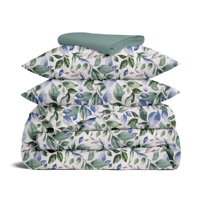 Schnellsuche , , Зелений, Квіти, Ранфорс, 200х220 см, Євро постіль з простирадлом на резинці WATERCOLOR FLOWERS