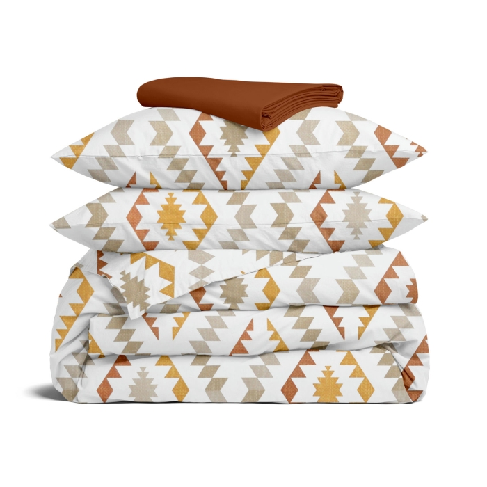 Schnellsuche , , Бежевий, Геометрія, Ранфорс, 200х220 см, Євро постільна білизна з простирадлом на резинці BOHO FLAME