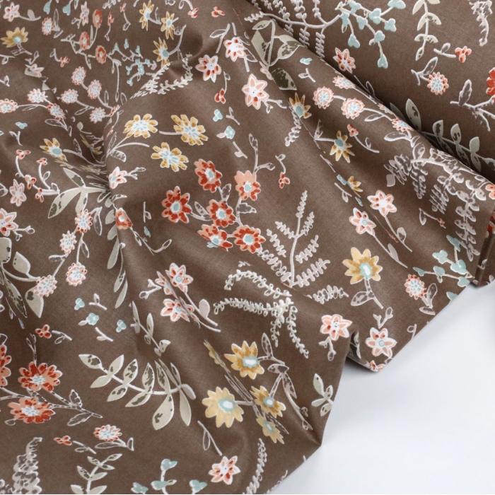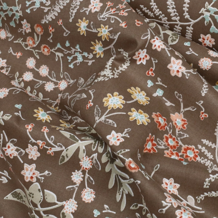 Schnellsuche , , Коричневий, Квіти, Ранфорс, 200х220 см, Євро постільна білизна з простирадлом на резинці BOTANIC NIGHT