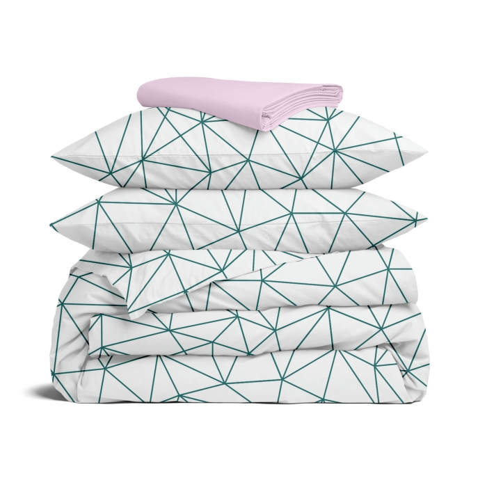 Schnellsuche , , Зелений, Геометрія, Ранфорс, 200х220 см, Євро постільна білизна з простирадлом на резинці CRYSTAL LINES