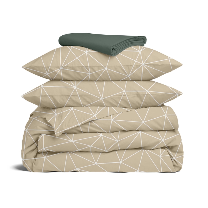Schnellsuche , , Капучино, Геометрія, Ранфорс, 200х220 см, Євро постільна білизна з простирадлом на резинці EARTHY LINES