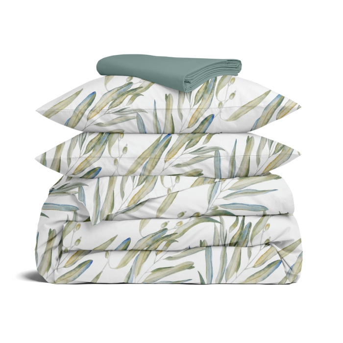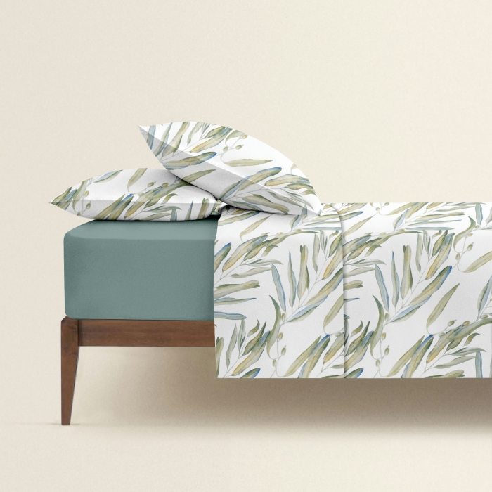 Schnellsuche , , Оливковий, Рослини, Ранфорс, 200х220 см, Євро постільна білизна з простирадлом на резинці OLIVE GARDEN