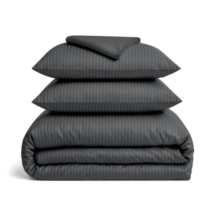 Schnellsuche , СтрайпСатин графіт (Lava) Т 10, Графіт, , Сатин, 200х220 см, Євро постіль сатин з простирадлом на резинці LAVA
