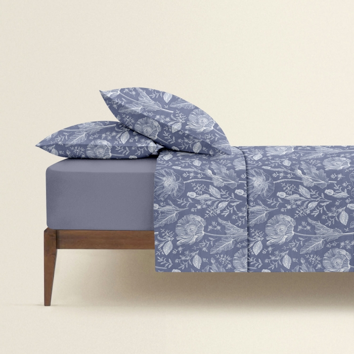 Євро постільна білизна сатин з простирадлом на резинці BOTANIC FLORA BELUGA CS3