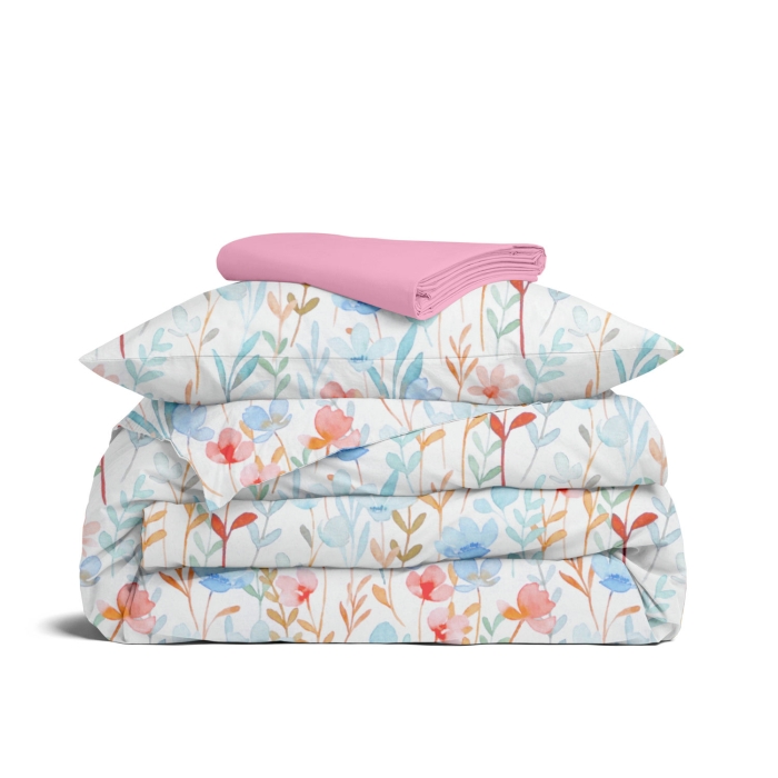 Підліткова постільна білизна з простирадлом на резинці AQUARELLE FLOWERS CS6