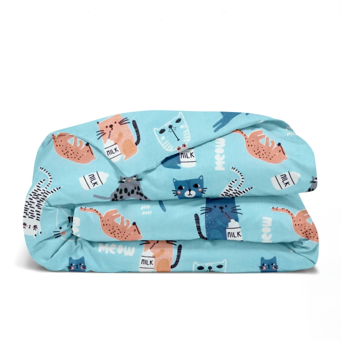 Schnellsuche , , Бірюзовий, Тварини, Ранфорс, 145х210 см, Підліткова постіль з простирадлом на резинці CATS
