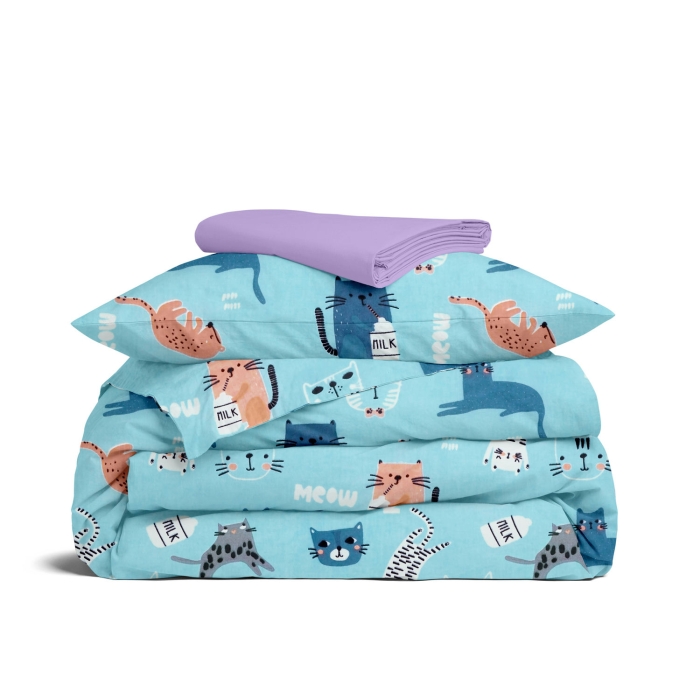 Schnellsuche , , Бірюзовий, Тварини, Ранфорс, 145х210 см, Підліткова постіль з простирадлом на резинці CATS