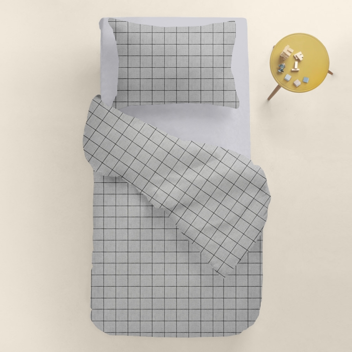 Schnellsuche , клітинка, Сірий, Геометрія, Ранфорс, 160х220 см, Підліткова постіль з простирадлом на резинці CELL