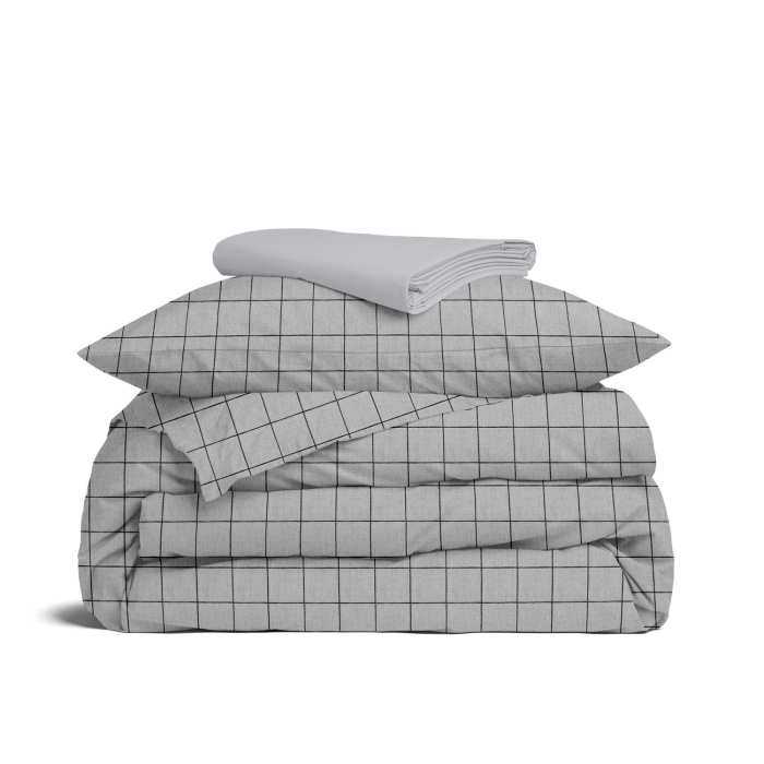 Schnellsuche , клітинка, Сірий, Геометрія, Ранфорс, 160х220 см, Підліткова постіль з простирадлом на резинці CELL