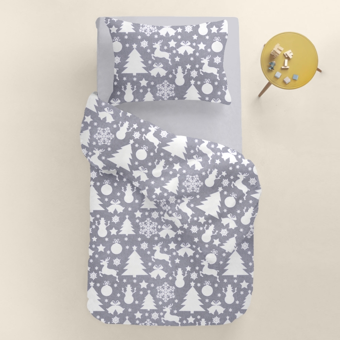 Schnellsuche , , Сірий, Новорічний, Ранфорс, 160х220 см, Підліткова постіль з простирадлом на резинці CHRISTMAS TOYS