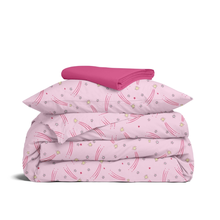 Schnellsuche , , Фуксія, Зорі, Ранфорс, 160х220 см, Підліткова постіль з простирадлом на резинці FIREWORK
