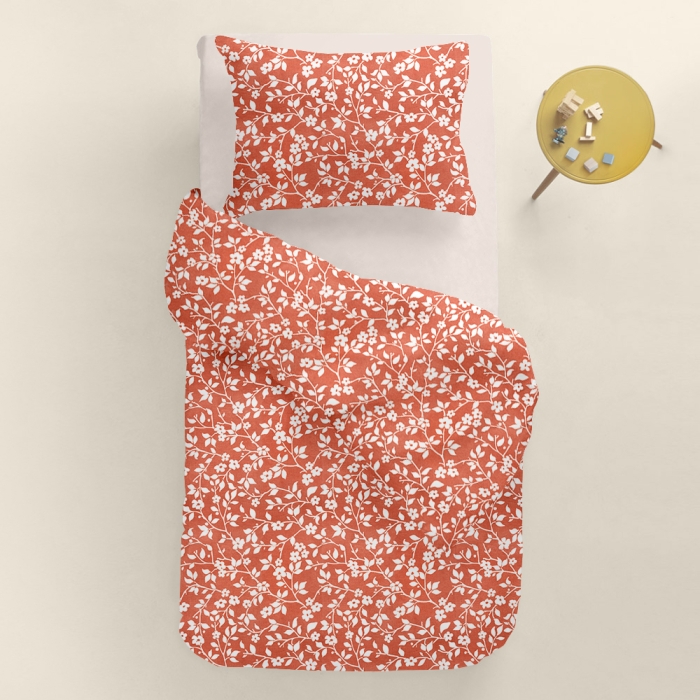 Schnellsuche , квіти, квітки, квіточки, природа, Теракотовий, Квіти, Ранфорс, 160х220 см, Підліткова постіль з простирадлом на резинці FLORET